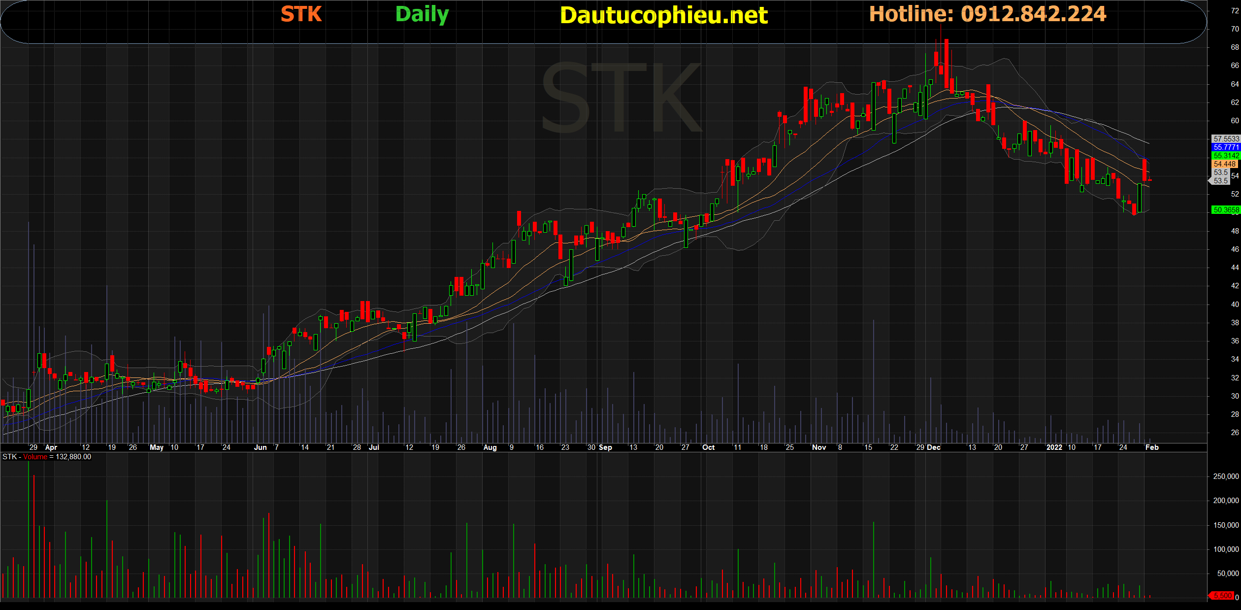 Đồ thị cổ phiếu STK phiên giao dịch ngày 08/02/2022. Nguồn: AmiBroker