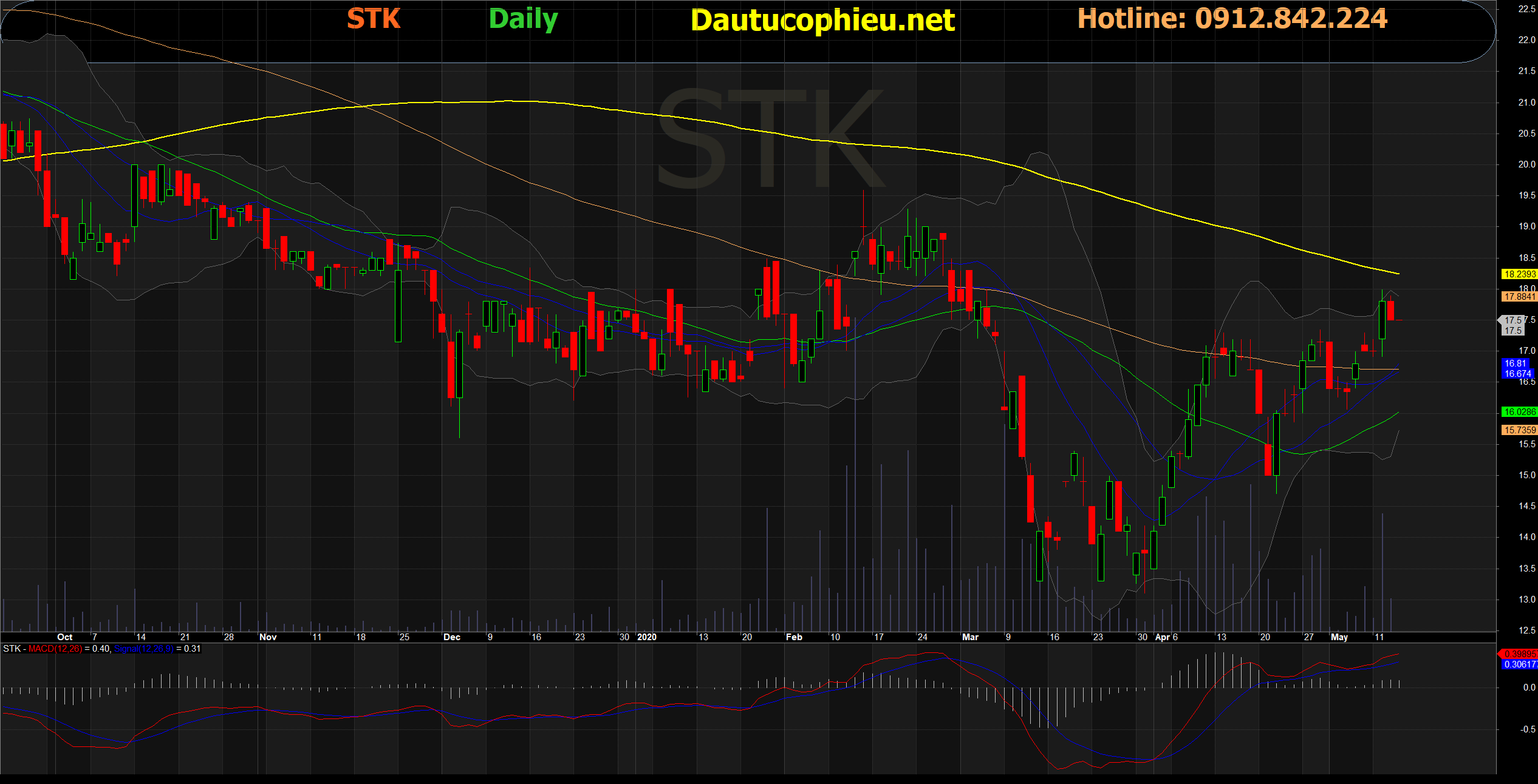 - Chúng tối ước tính giá trị hợp ký của STK ở mức 21.400 đồng/cp, kết hợp cổ tức tiền mặt dự kiến 1.500 đồng/cp trong 12 tháng tới, tỷ suất sinh lời kỳ vọng đạt 30% so với giá đóng cửa ngày 12/5/2020, chúng tôi duy trì khuyến nghị MUA cho STK. Giá mục tiêu đã được điều chỉnh giảm nhẹ 7% so với Báo cáo Chiến lược năm 2020 nhằm phản ánh tầm ảnh hưởng của dịch COVID-19.