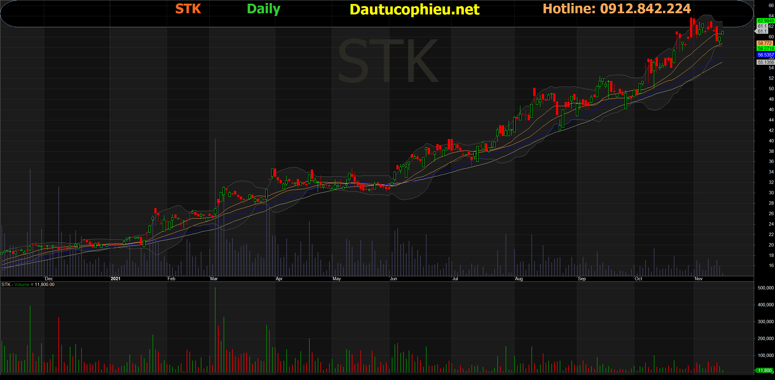 Đồ thị cổ phiếu STK phiên giao dịch ngày 15/11/2021. Nguồn: AmiBroker