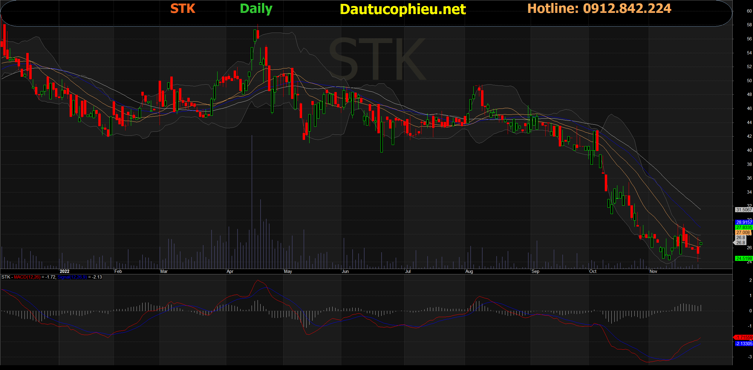 Đồ thị cổ phiếu STK phiên giao dịch ngày 25/11/2022. Nguồn: AmiBroker