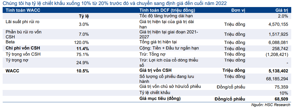 Trước đây chúng tôi đã áp dụng mức chiết khấu 20% để phản ánh rủi ro cạnh tranh từ các công ty Trung Quốc và tính thanh khoản thấp để xác định giá mục tiêu. Tuy nhiên, sau khi áp dụng chính sách thuế CBPG mới đối với sợi filament polyester nhập khẩu từ Trung Quốc, Ấn Độ, Indonesia và Malaysia, chúng tôi hạ mức chiết khấu xuống 10%. Trong khi đó, chúng tôi giữ nguyên các giả định khác đối với mô hình dự báo của chúng tôi: tỷ lệ phi rủi ro là 3,0%, phần bù rủi ro vốn CSH là 7,0%, hệ số beta là 1,2 lần và tốc độ tăng trưởng dài hạn là 2,0%. Chúng tôi chuyển năm cơ sở định giá sang cuối năm 2022. Chúng tôi tóm tắt các giả định trong Bảng 12-13 và thực hiện phân tích độ nhạy đối với các giả định đầu vào chính trong Bảng 14.