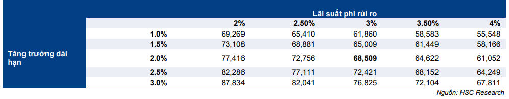 Bảng 14: Phân tích độ nhạy với tăng trưởng dài hạn và lãi suất phi rủi ro, STK