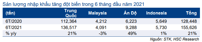 Trong nửa đầu năm 2021, sản lượng nhập khẩu sợi RPF từ Trung Quốc đạt 20.182 tấn, gấp đôi sản lượng của STK trong giai đoạn này. Do STK là một trong hai nhà cung cấp sợi RPF trong nước bên cạnh Formosa (Không niêm yết), STK có thể tăng sản lượng tiêu thụ sợi RPF nhờ giá bán tốt hơn sau khi các sản phẩm Trung Quốc chịu thuế CBPG.