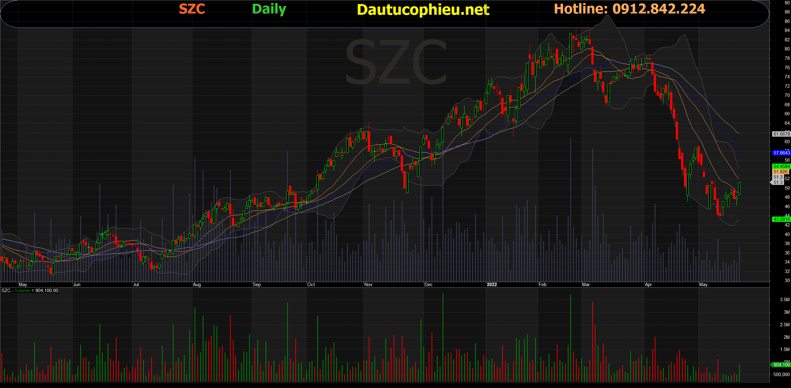 Đồ thị cổ phiếu SZC phiên giao dịch ngày 26/05/2022. Nguồn: AmiBroker