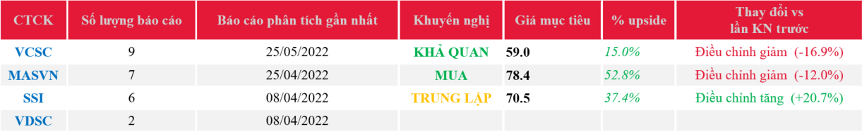 - Chúng tôi điều chỉnh giảm giá mục tiêu 17% cho CTCP Sonadezi Châu Đức (Cổ phiếu SZC) xuống 59.000 đồng/cổ phiếu nhưng nâng khuyến nghị lên KHẢ QUAN từ PHÙ HỢP THỊ TRƯỜNG do giá cổ phiếu của công ty đã giảm 35% trong 3 tháng qua.