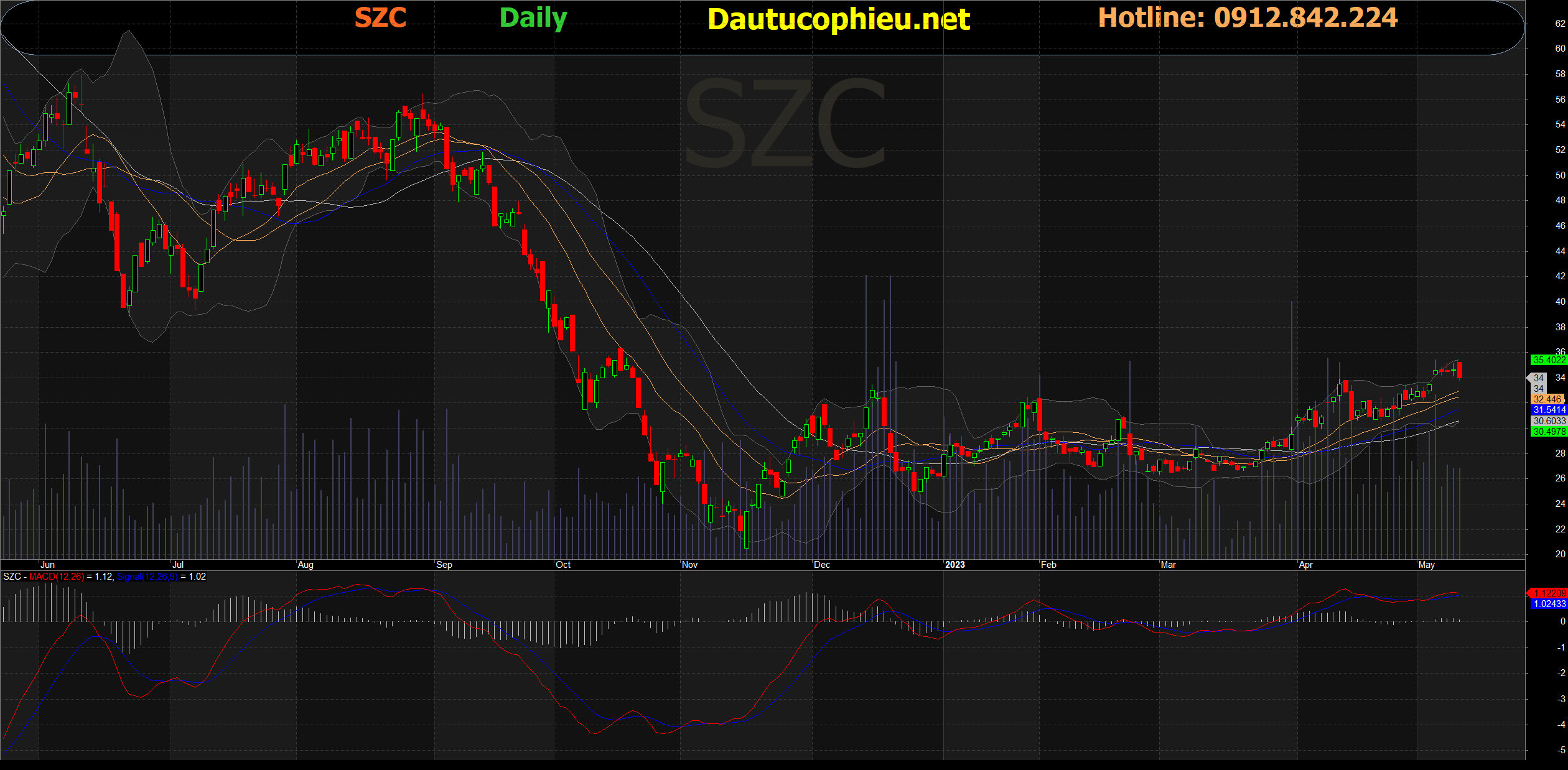 Đồ thị cổ phiếu SZC phiên giao dịch ngày 15/05/2023. Nguồn: AmiBroker