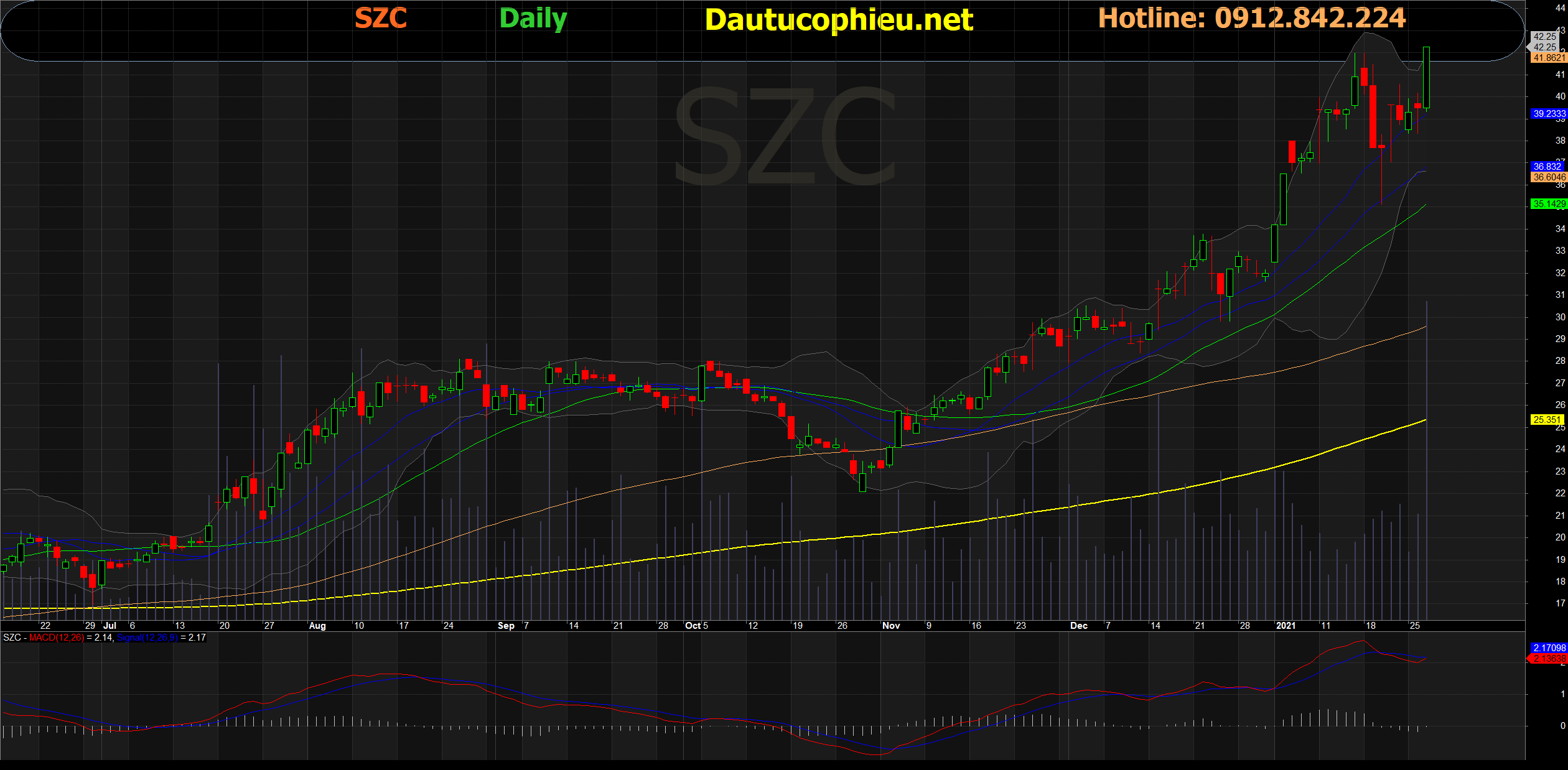 Đồ thị cổ phiếu SZC phiên giao dịch ngày 27/01/2021. Nguồn: AmiBroker