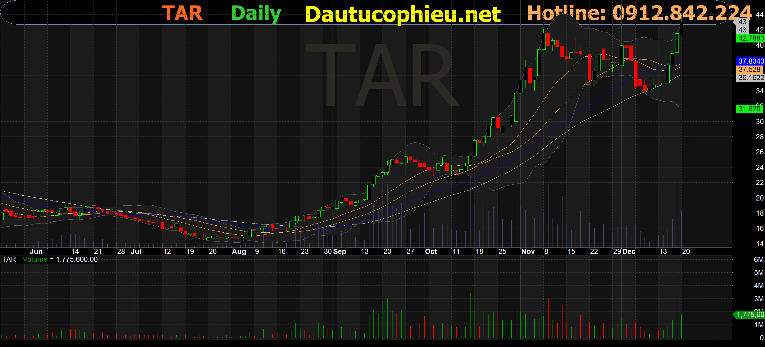 Đồ thị cổ phiếu TAR phiên giao dịch ngày 20/12/2021. Nguồn: AmiBroker