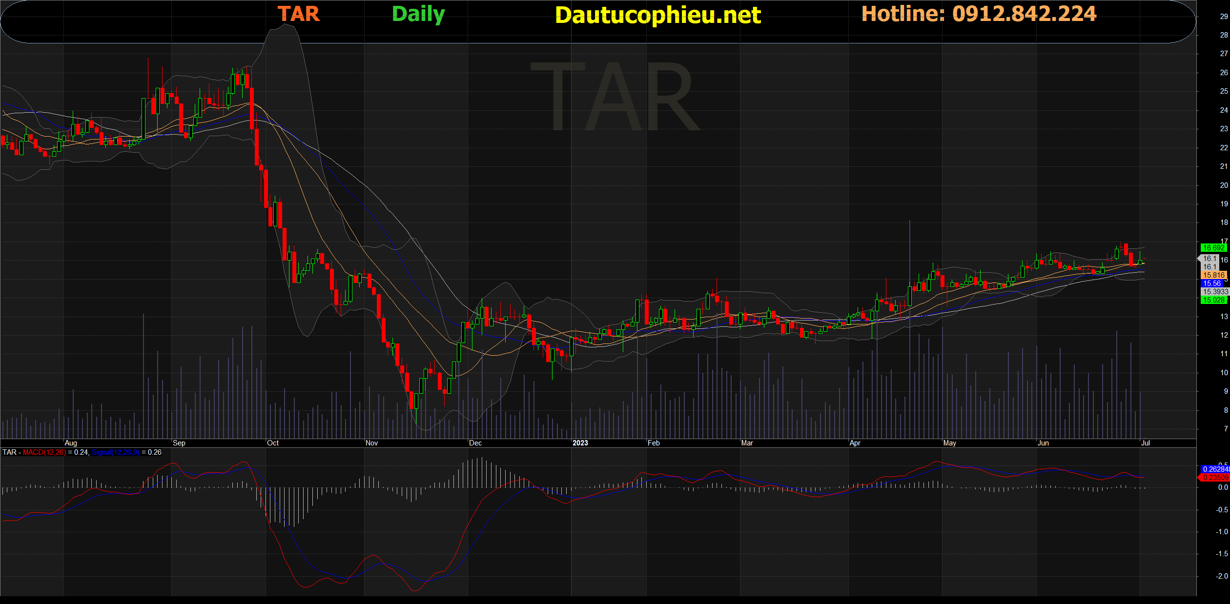 Đồ thị cổ phiếu TAR phiên giao dịch ngày 04/07/2023. Nguồn: AmiBroker