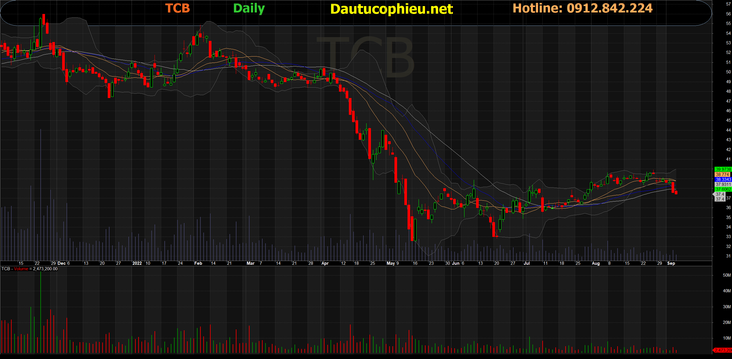 Đồ thị cổ phiếu TCB phiên giao dịch ngày 08/09/2022. Nguồn: AmiBroker