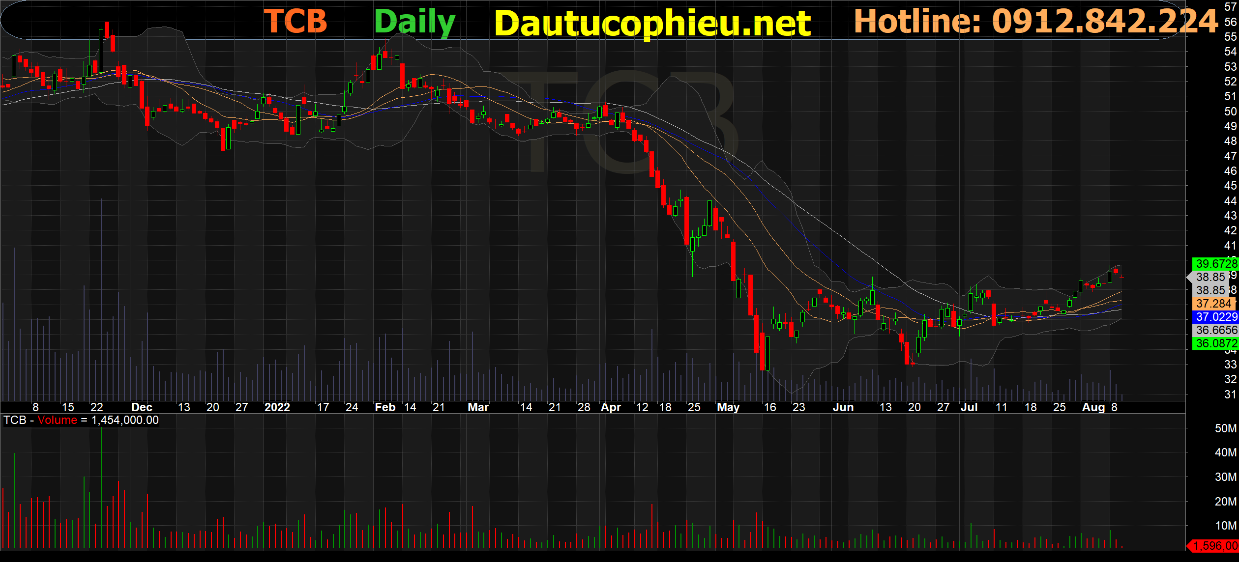Đồ thị cổ phiếu TCB phiên giao dịch ngày 10/08/2022. Nguồn: AmiBroker
