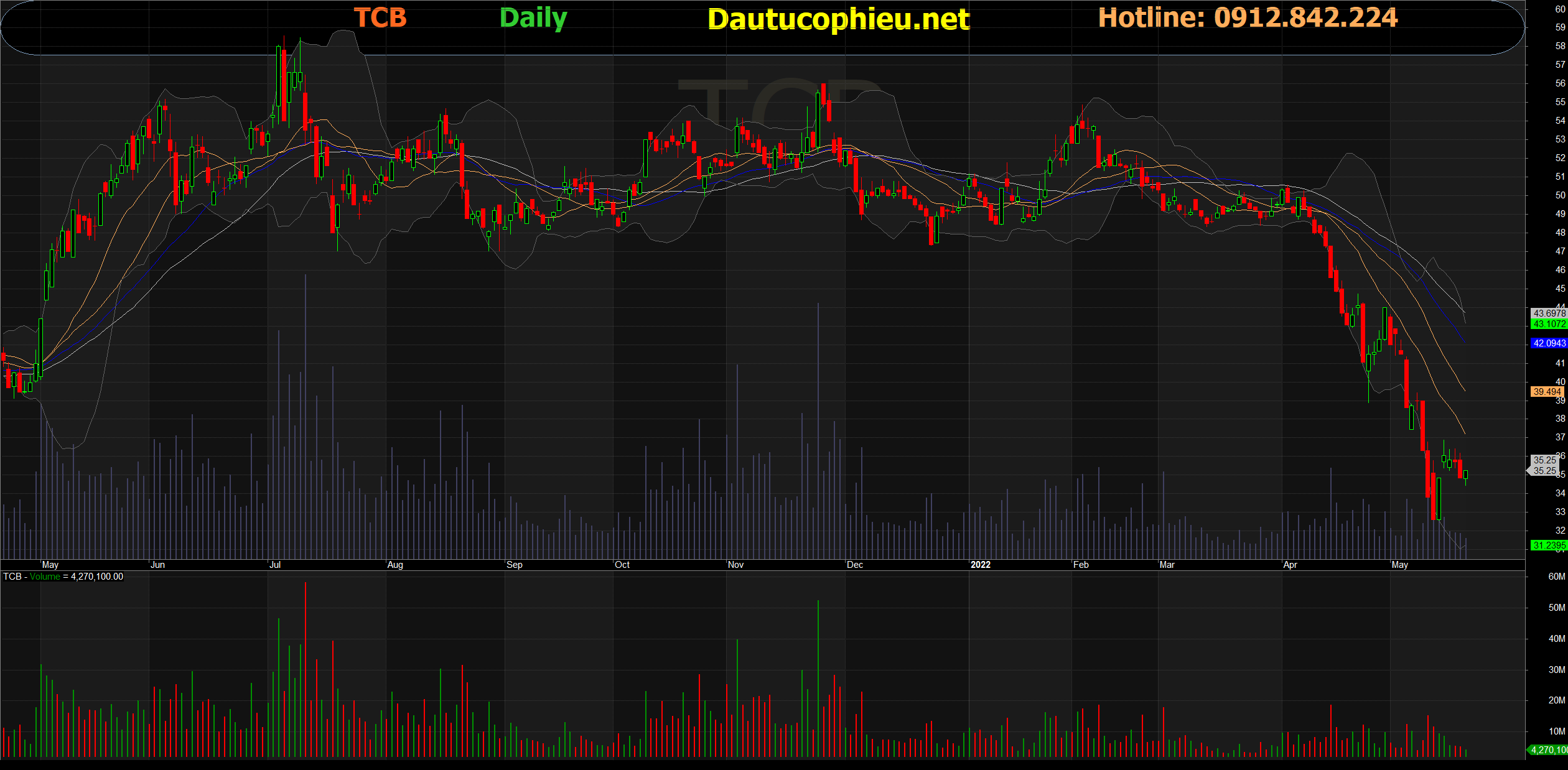 Đồ thị cổ phiếu TCB phiên giao dịch ngày 24/05/2022. Nguồn: AmiBroker