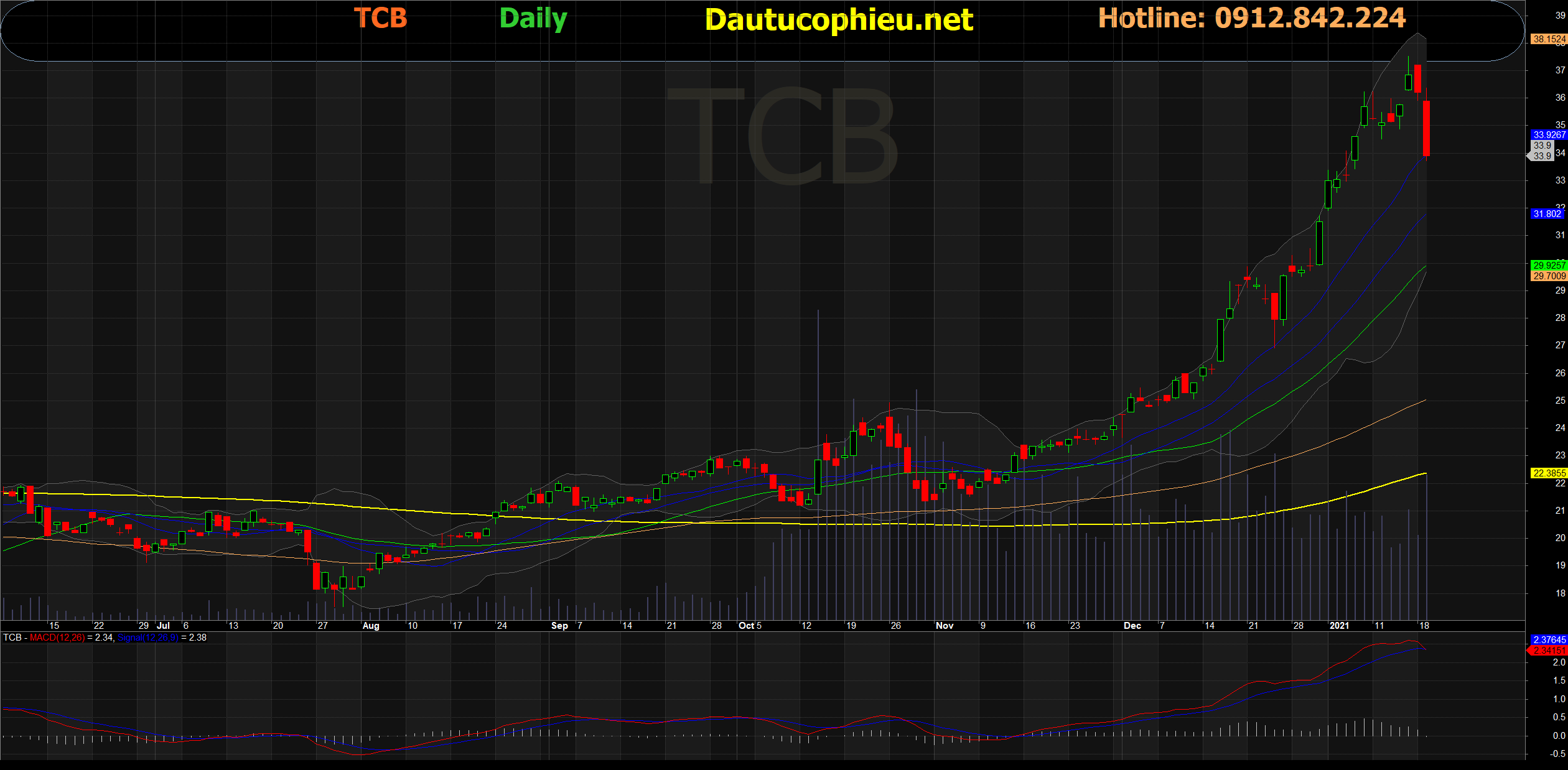 Đồ thị cổ phiếu TCB phiên giao dịch ngày 19/01/2021. Nguồn: AmiBroker
