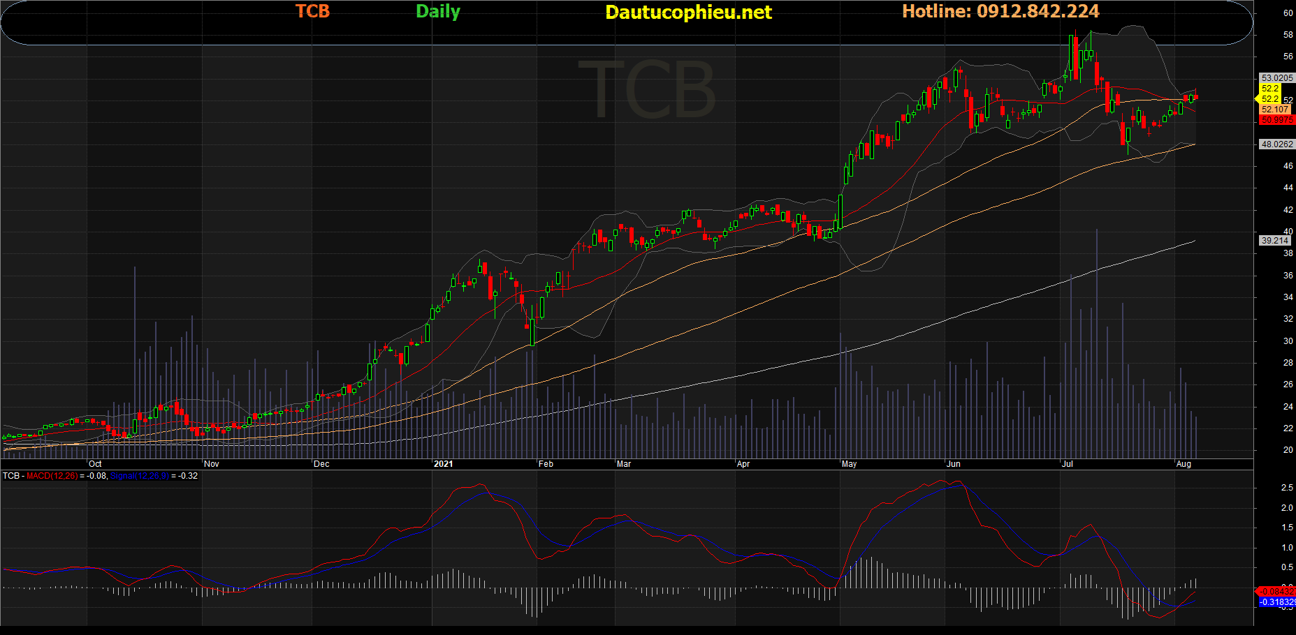 Đồ thị cổ phiếu TCB phiên giao dịch ngày 06/08/2021. Nguồn: AmiBroker