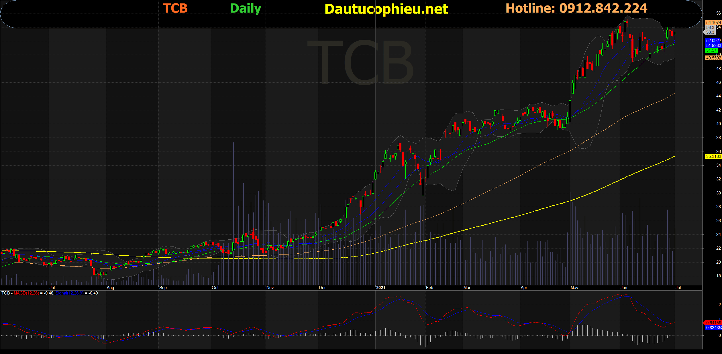 Đồ thị cổ phiếu TCB phiên giao dịch ngày 01/07/2021. Nguồn: AmiBroker