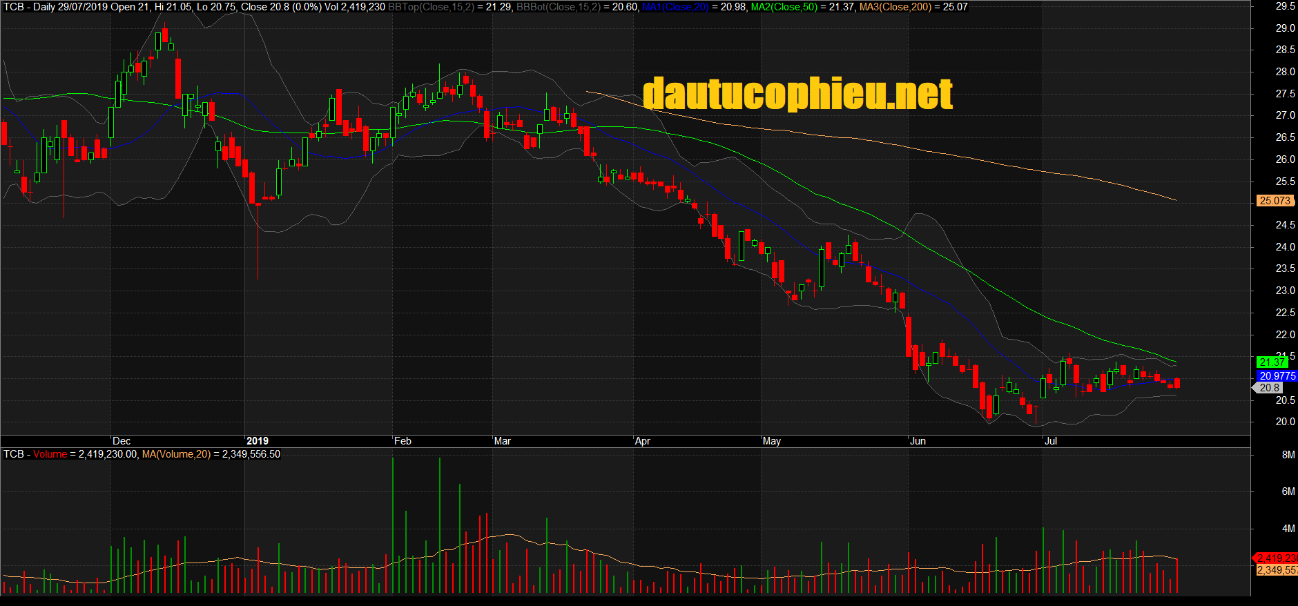 Đồ thị cổ phiếu TCB phiên giao dịch ngày 29/07/2019. Nguồn: AmiBroker