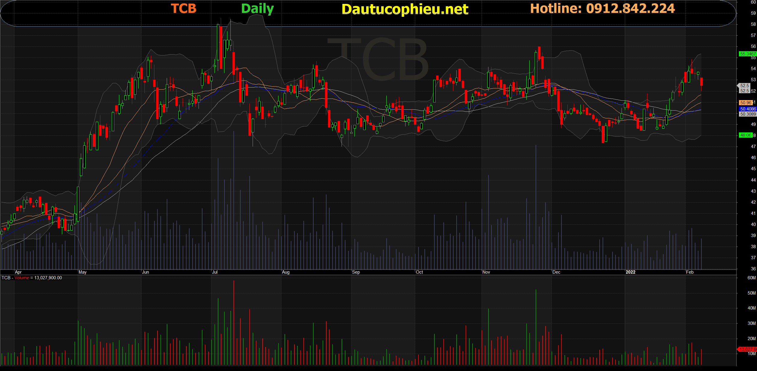 Đồ thị cổ phiếu TCB phiên giao dịch ngày 14/02/2022. Nguồn: AmiBroker
