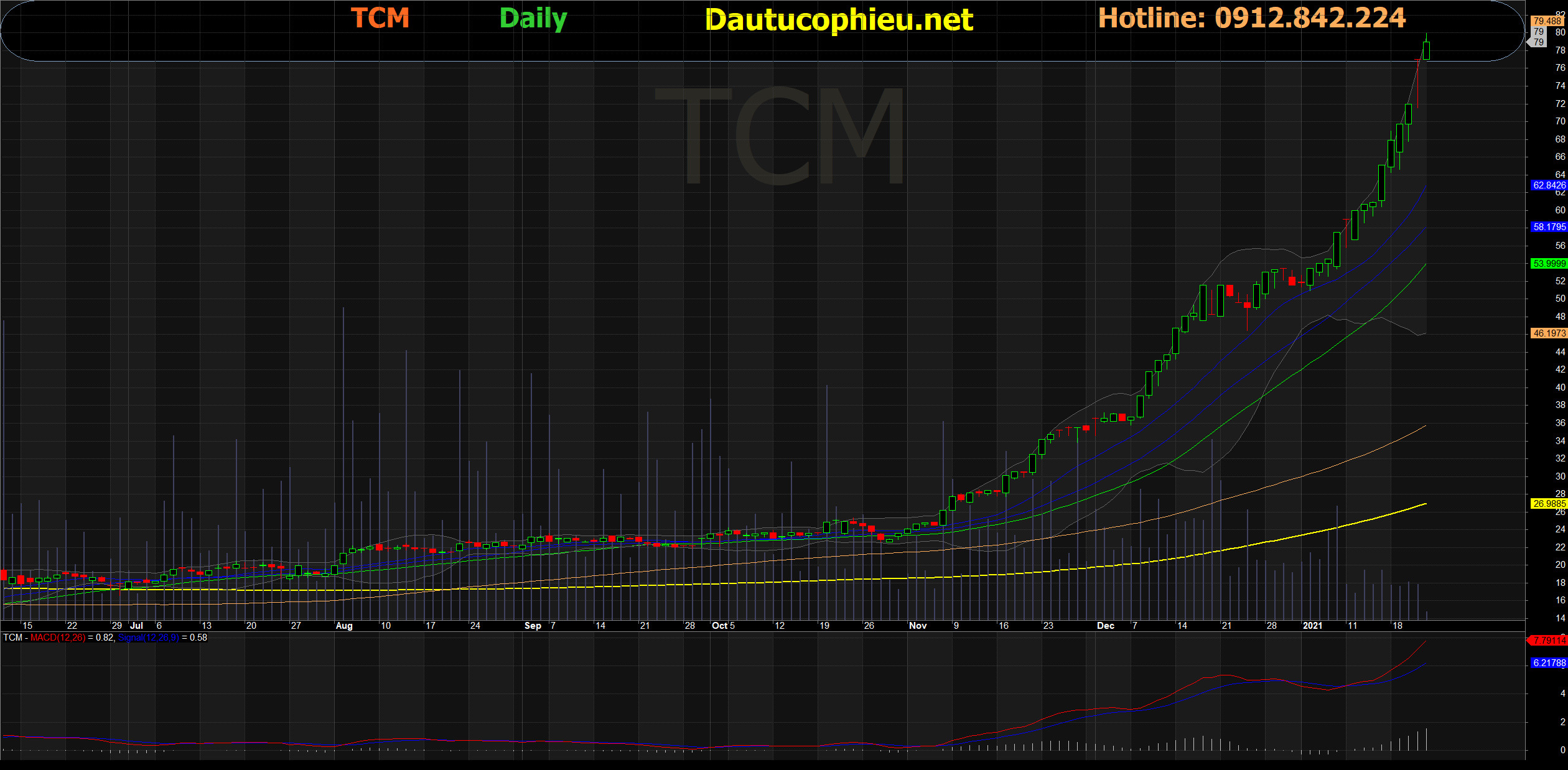 Đồ thị cổ phiếu TCM phiên giao dịch ngày 22/01/2021. Nguồn: AmiBroker