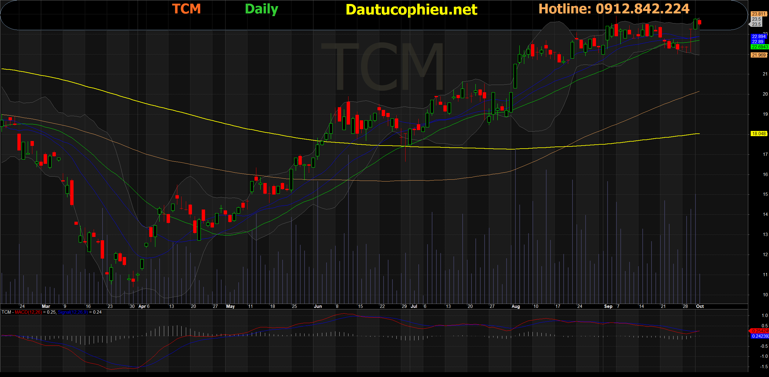 Đồ thị cổ phiếu TCM phiên giao dịch ngày 02/10/2020. Nguồn: AmiBroker