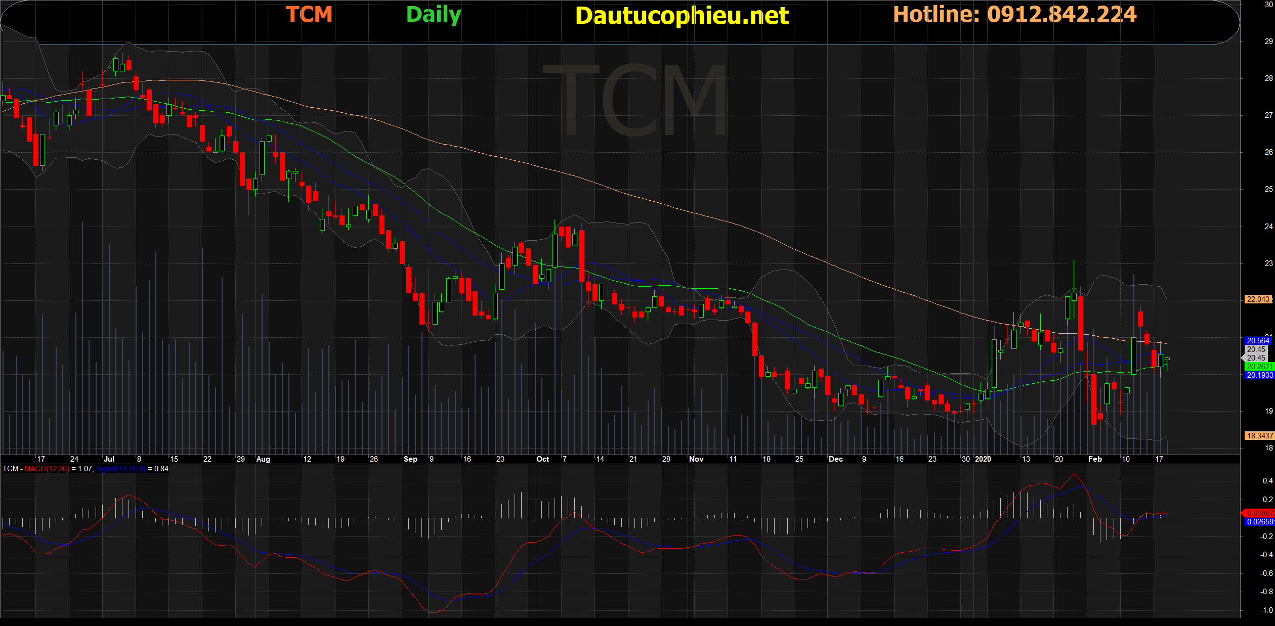 Đồ thị cổ phiếu TCM phiên giao dịch ngày 19/02/2020. Nguồn: AmiBroker