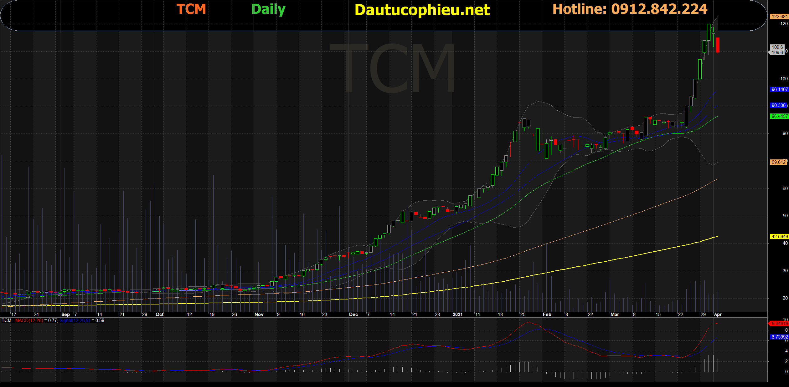 Đồ thị cổ phiếu TCM phiên giao dịch ngày 02/04/2021. Nguồn: AmiBroker