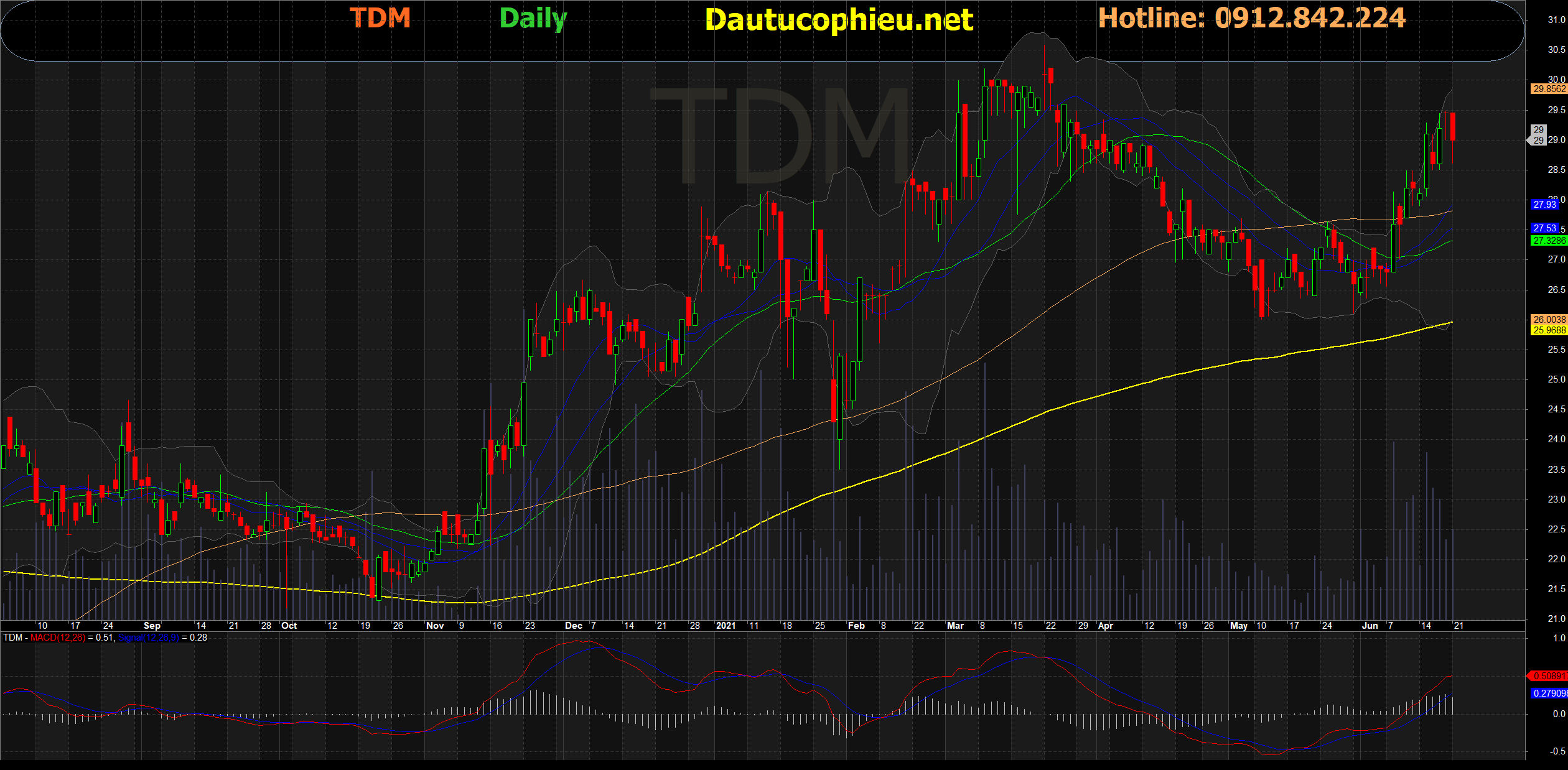 Đồ thị cổ phiếu TDM phiên giao dịch ngày 21/06/2021. Nguồn: AmiBroker