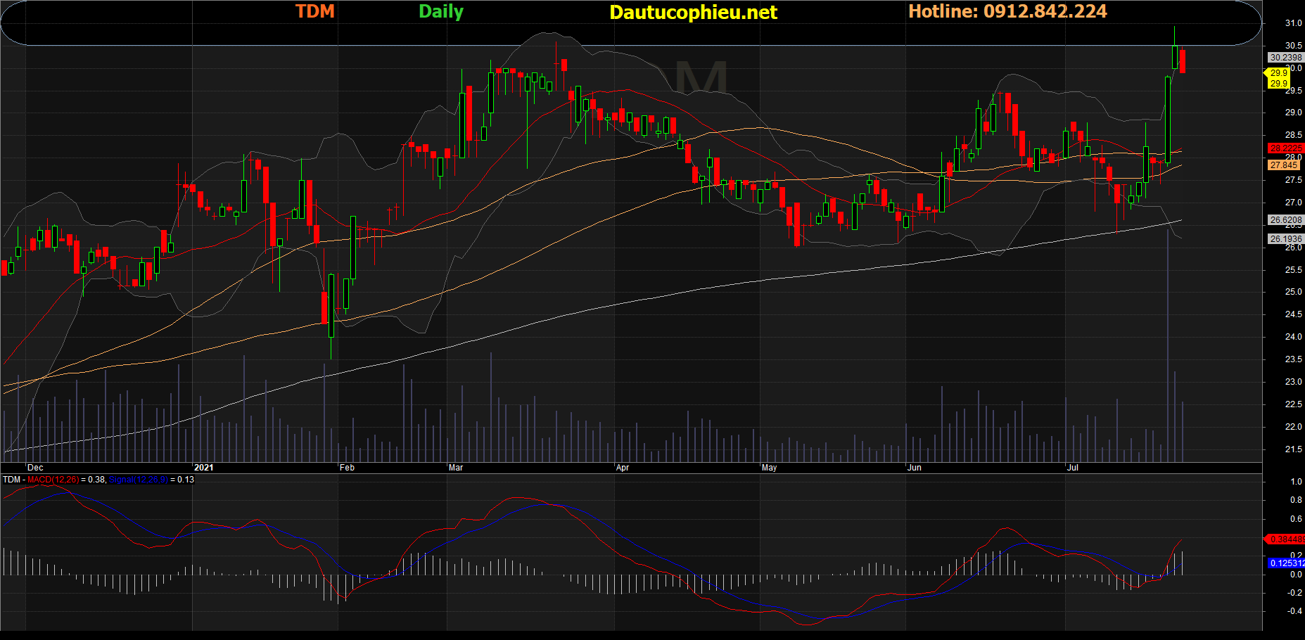 Đồ thị cổ phiếu TDM phiên giao dịch ngày 23/07/2021. Nguồn: AmiBroker