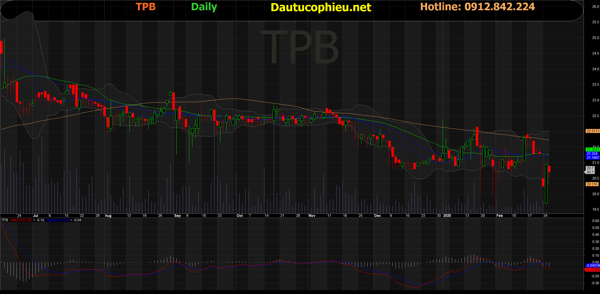 Đồ thị cổ phiếu TPB phiên giao dịch ngày 26/02/2020. Nguồn: AmiBroker