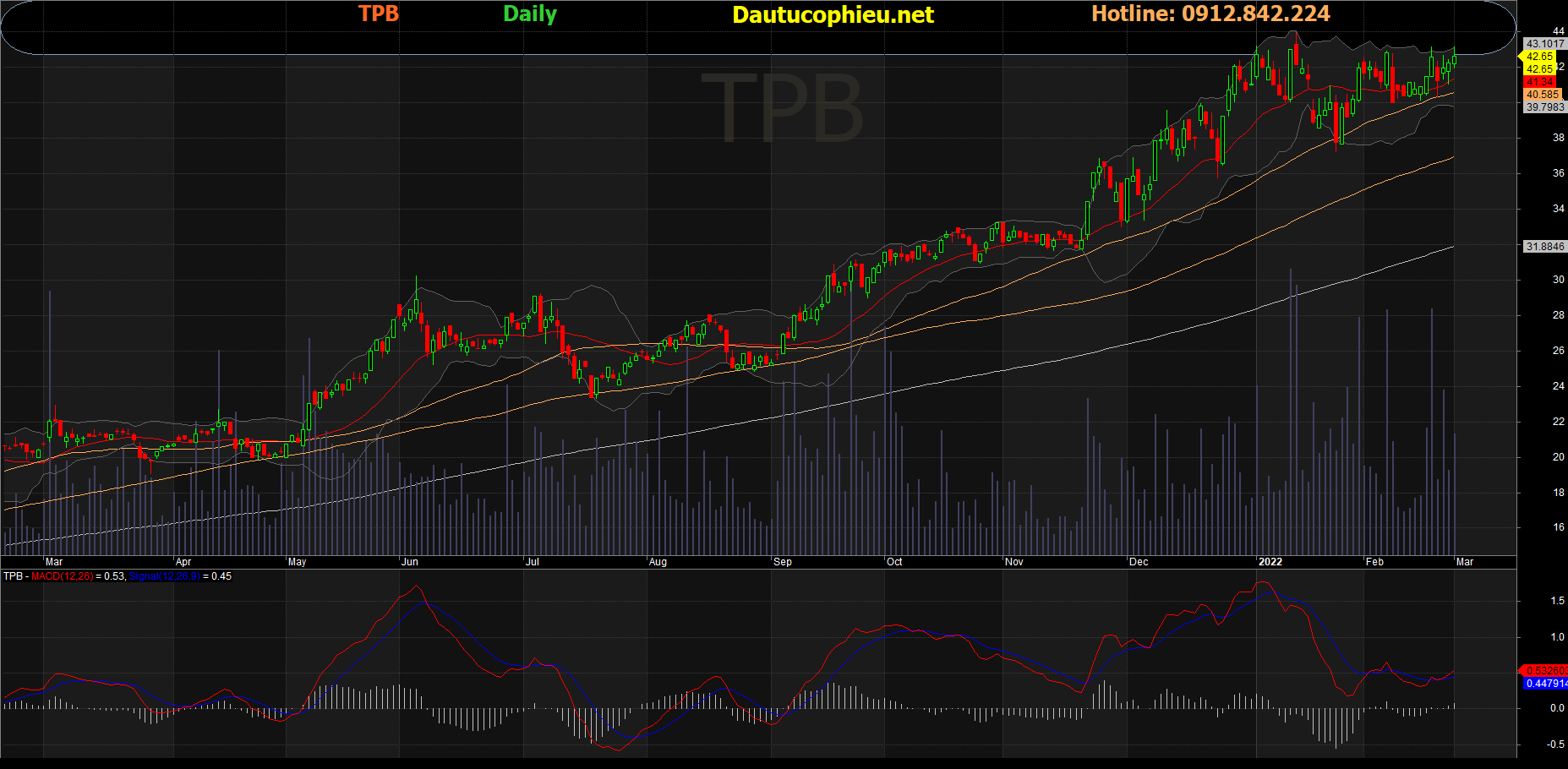 Đồ thị cổ phiếu TPB phiên giao dịch ngày 01/03/2022. Nguồn: AmiBroker