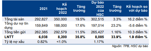 Bảng 2: Kế hoạch kinh doanh năm 2022, TPB