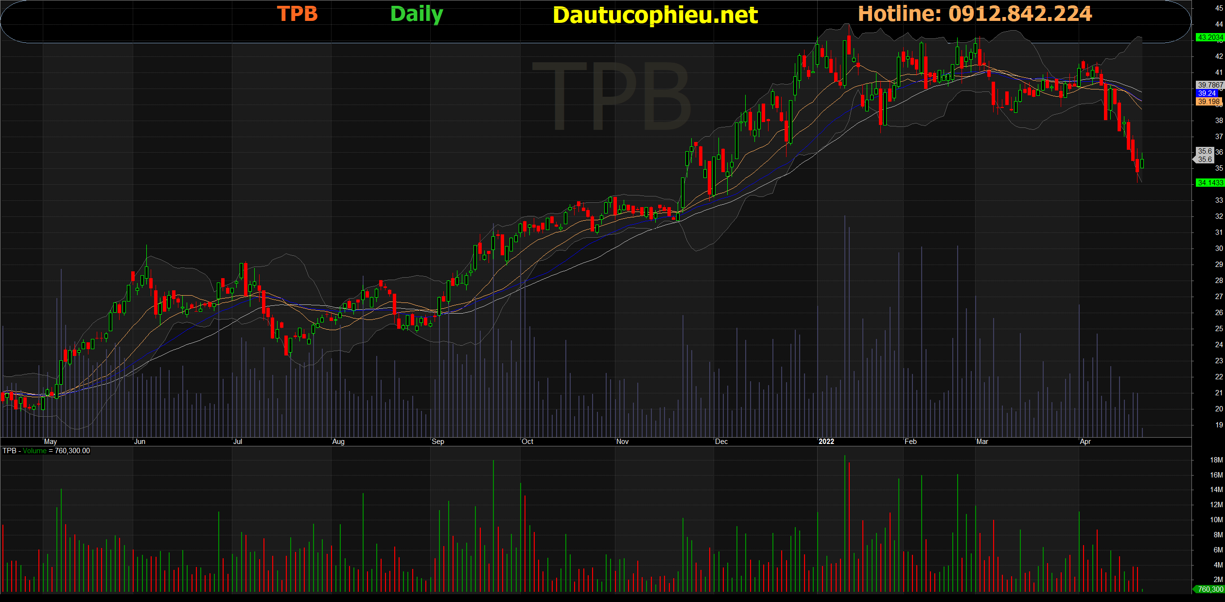 Đồ thị cổ phiếu TPB phiên giao dịch ngày 22/04/2022. Nguồn: AmiBroker