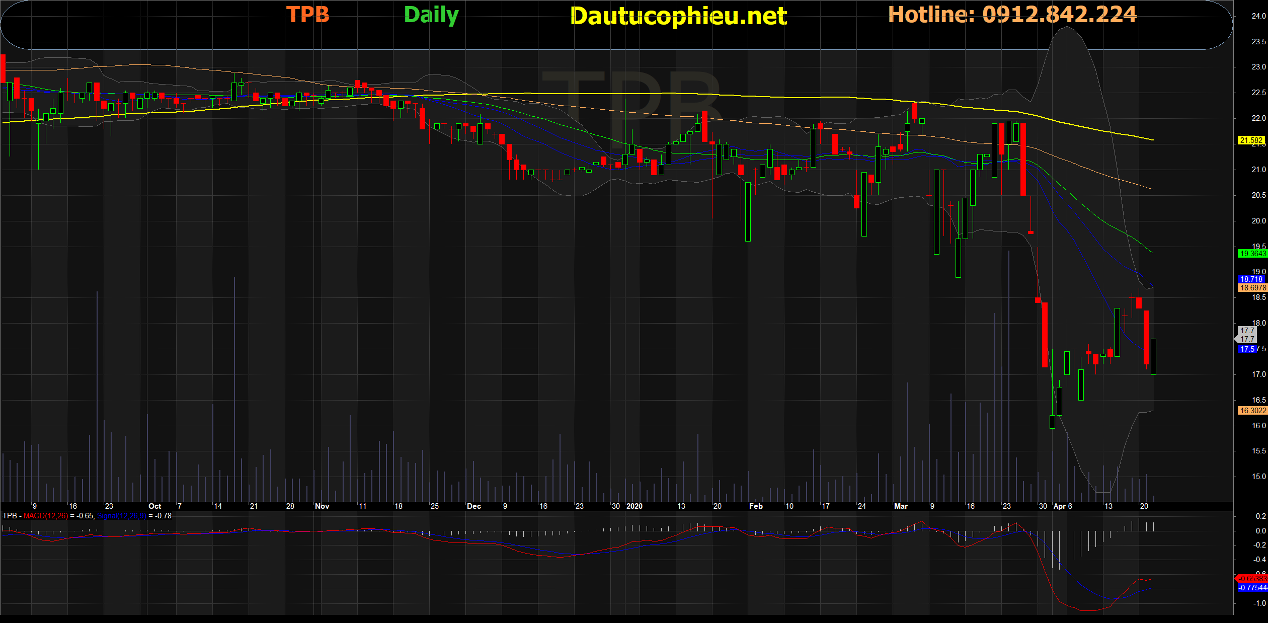 Đồ thị cổ phiếu TPB phiên giao dịch ngày 22/04/2020. Nguồn: AmiBroker.