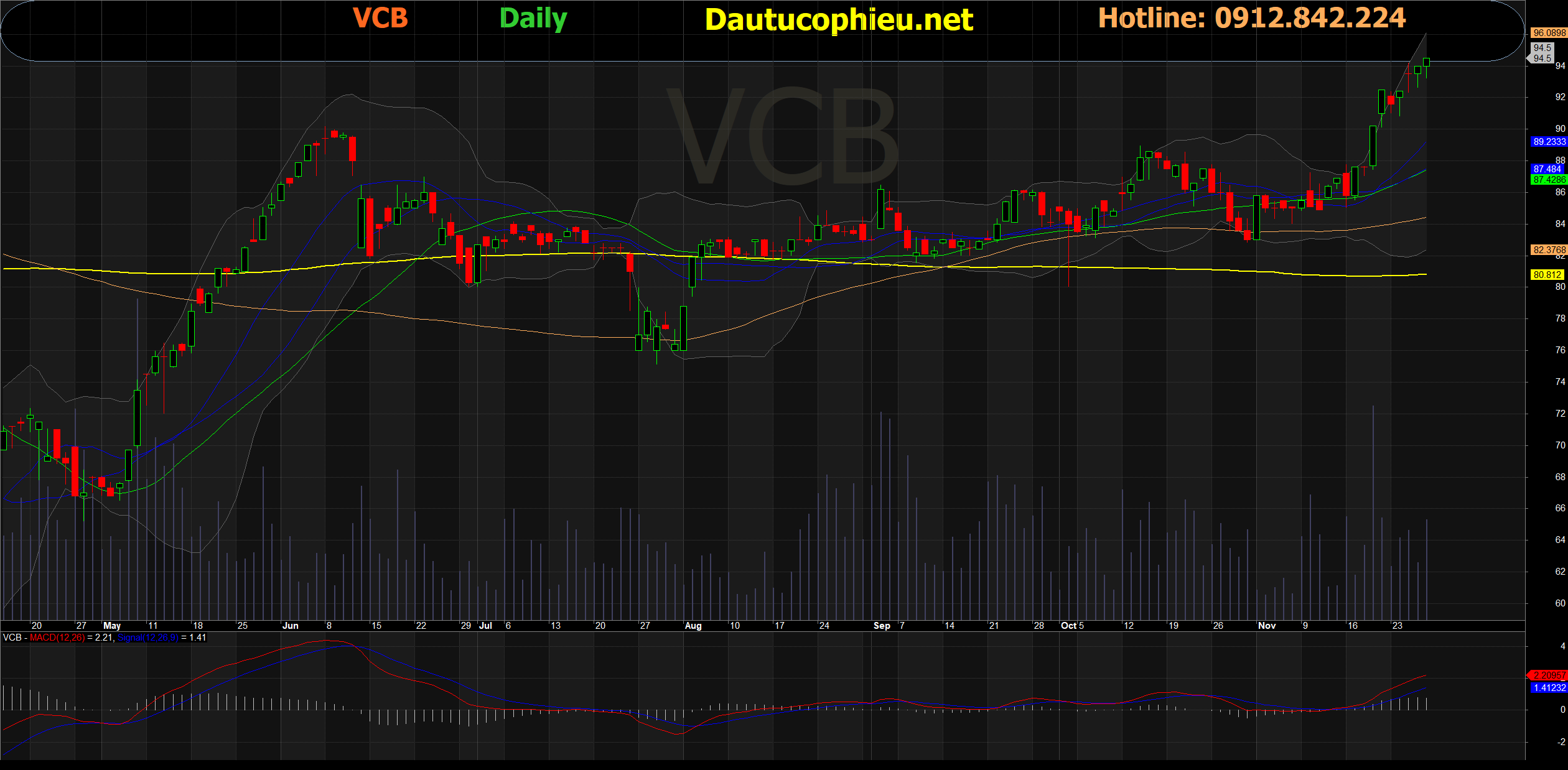 Đồ thị cổ phiếu VCB phiên giao dịch ngày 27/11/2020. Nguồn: AmiBroker