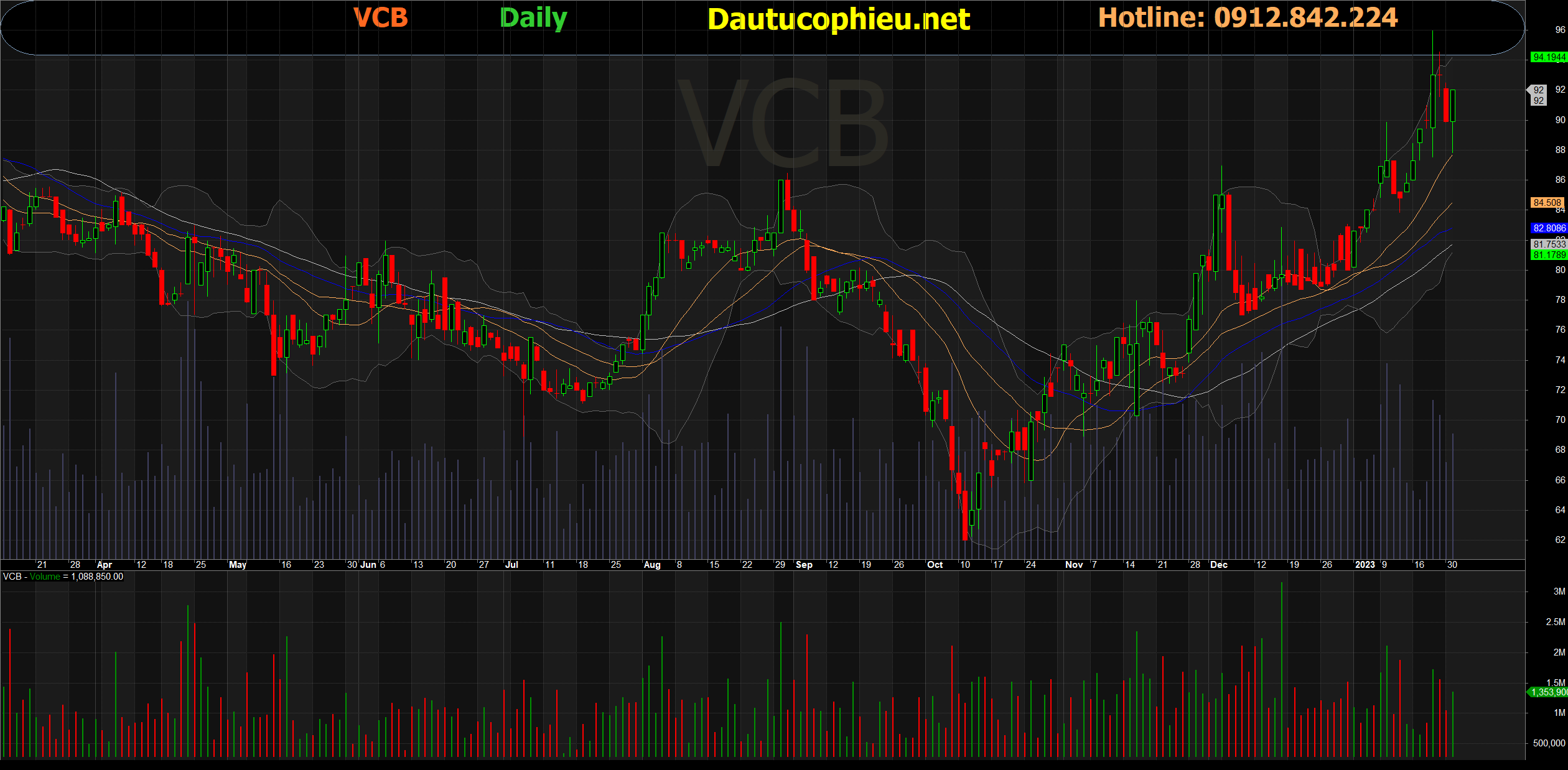 Đồ thị cổ phiếu VCB phiên giao dịch ngày 01/02/2023. Nguồn: AmiBroker