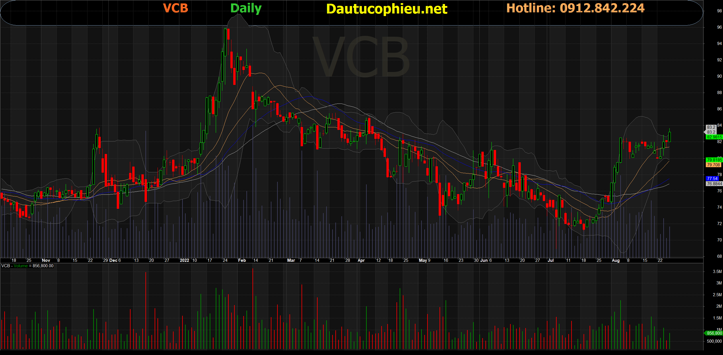 Đồ thị cổ phiếu VCB phiên giao dịch ngày 26/08/2022. Nguồn: AmiBroker