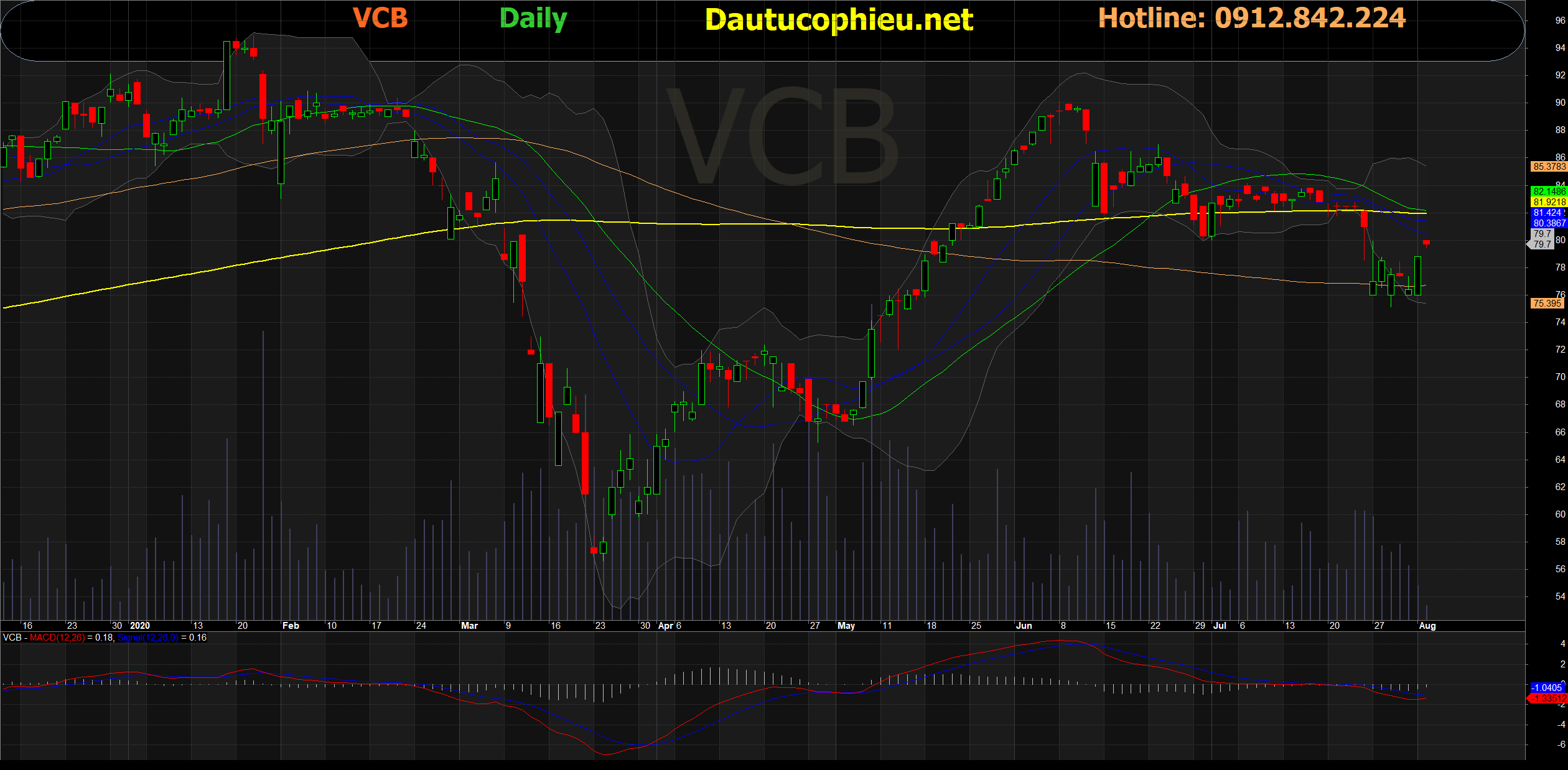 Đồ thị cổ phiếu VCB phiên giao dịch ngày 04/08/2020. Nguồn: AmiBroker