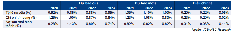Tóm lại, HSC lần lượt nâng 22% và 22,3% dự báo chi phí dự phòng năm 2021 và 2022 nhưng giảm 3% dự báo chi phí dự phòng năm 2023. Nói chung, chúng tôi cho rằng chi phí tín dụng sẽ đạt đỉnh là 1,23% vào năm 2021 và giảm về 1,08% trong năm 2022 và 0,83% trong năm 2023.