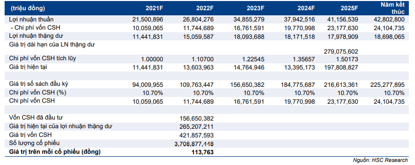 Bảng 14: Định giá theo thu nhập thặng dư, VCB
