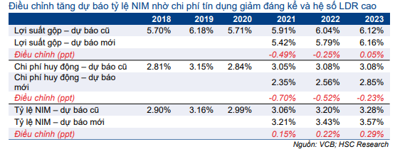 Nâng dự báo tỷ lệ NIM, giảm dự báo lợi suất gộp và chi phí huy động