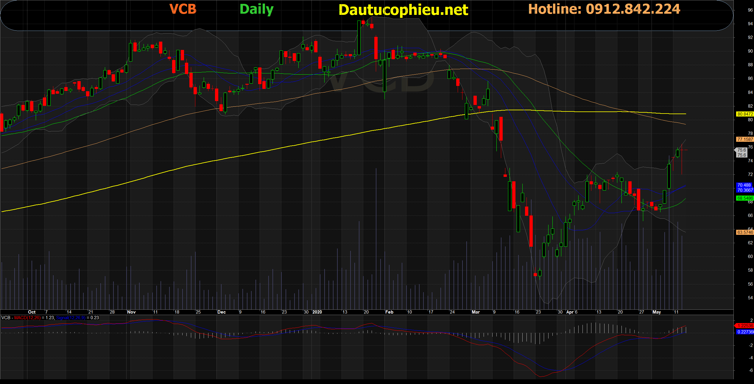 Đồ thị cổ phiếu VCB phiên giao dịch ngày 14/05/2020. Nguồn: AmiBroker