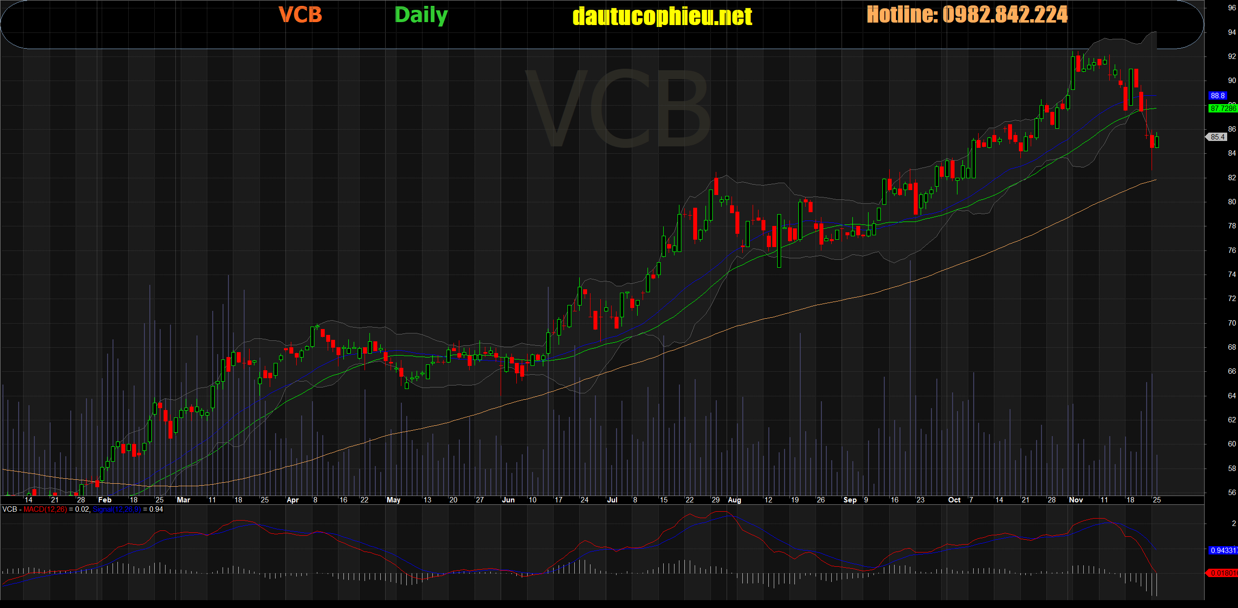 Đồ thị cổ phiếu VCB phiên giao dịch ngày 26/11/2019. Nguồn: AmiBroker.