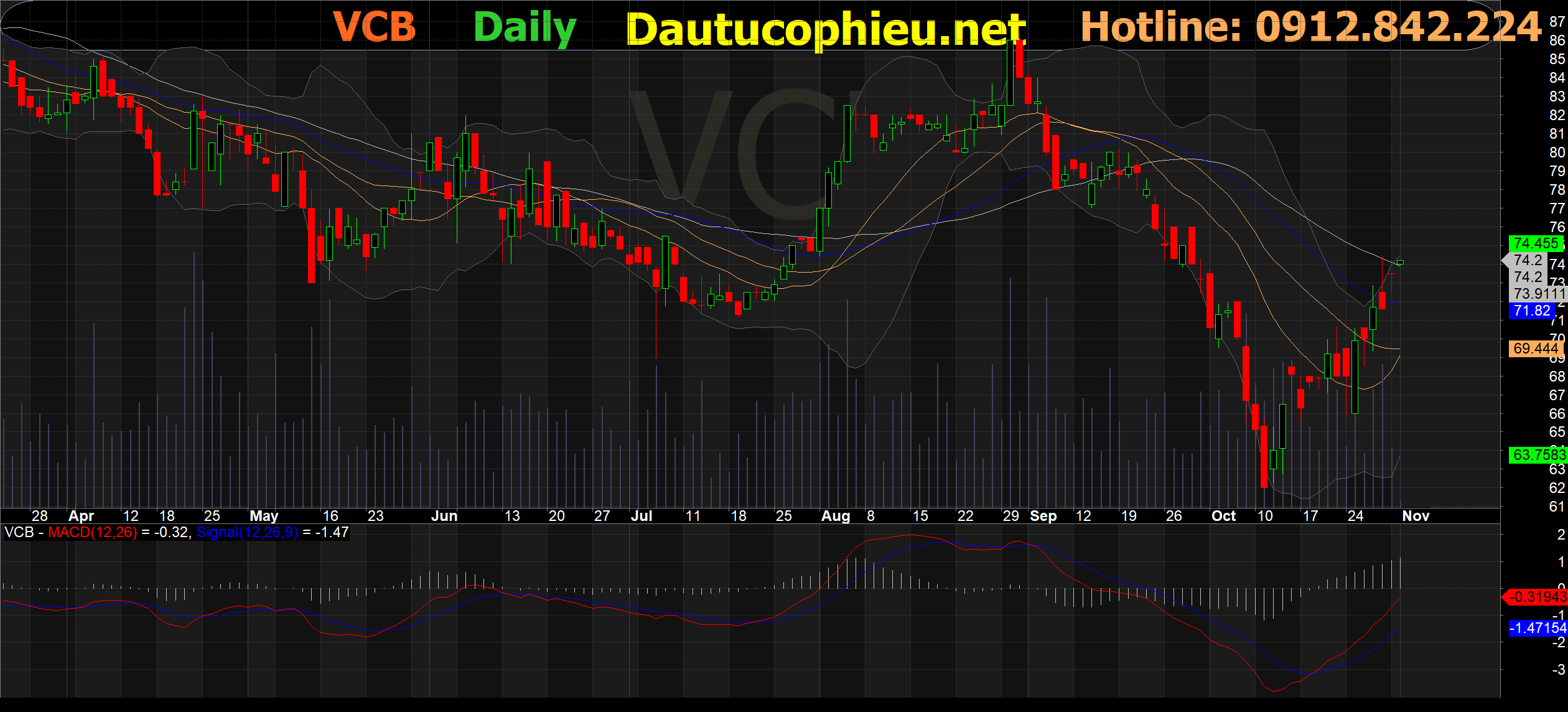 Đồ thị cổ phiếu VCB phiên giao dịch ngày 01/11/2022. Nguồn: AmiBroker