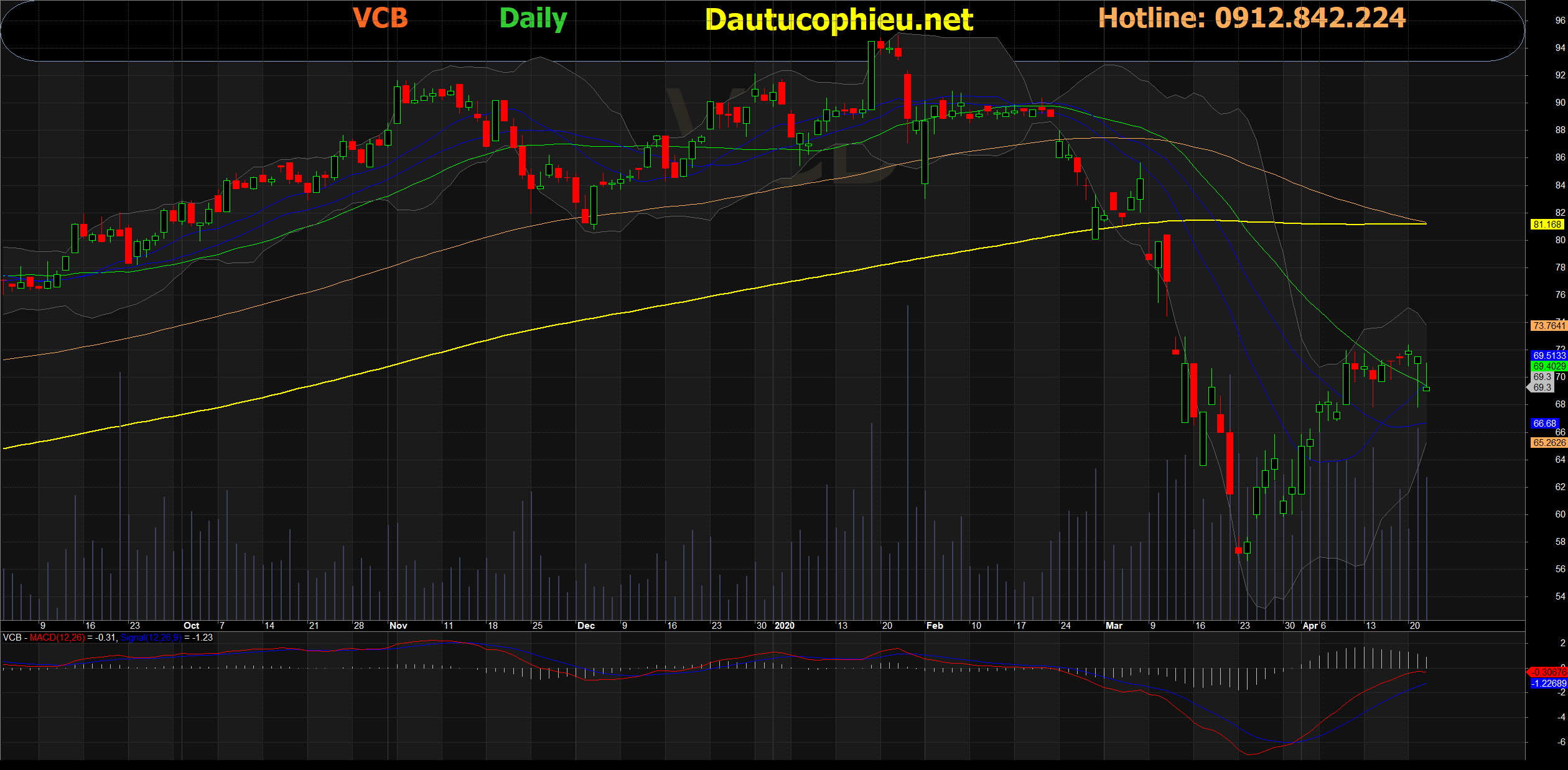 Đồ thị cổ phiếu VCB phiên giao dịch ngày 22/04/2020. Nguồn: AmiBroker.