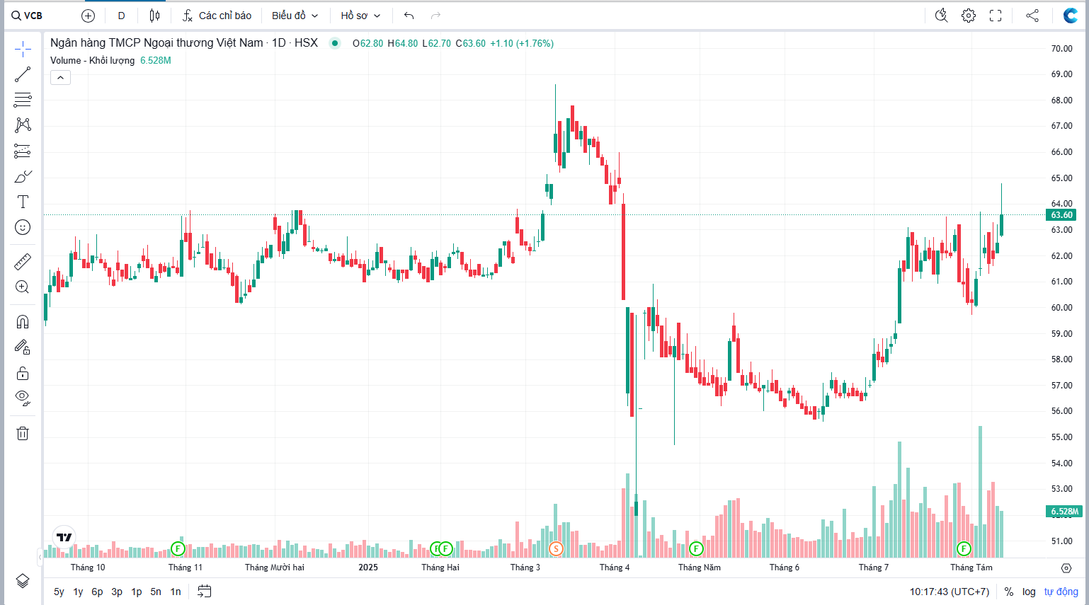 Đồ thị cổ phiếu VCB phiên giao dịch ngày 12/08/2025
