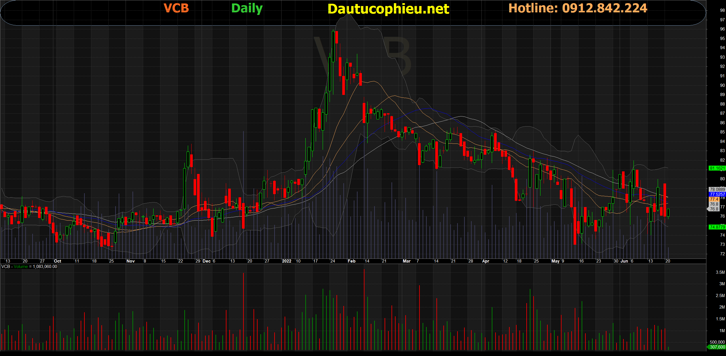 Đồ thị cổ phiếu VCB phiên giao dịch ngày 21/06/2022. Nguồn: AmiBroker