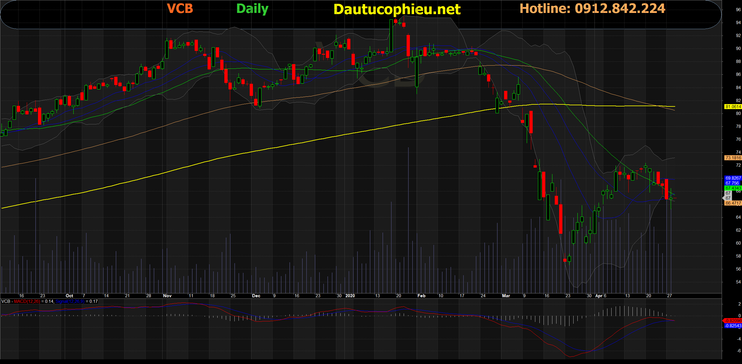 Đồ thị cổ phiếu VCB phiên giao dịch ngày 28/04/2020. Nguồn: AmiBroker