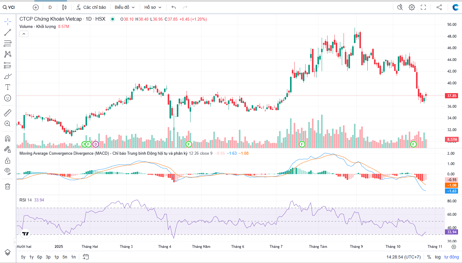 Đồ thị cổ phiếu VCI phiên giao dịch ngày 27/10/2025