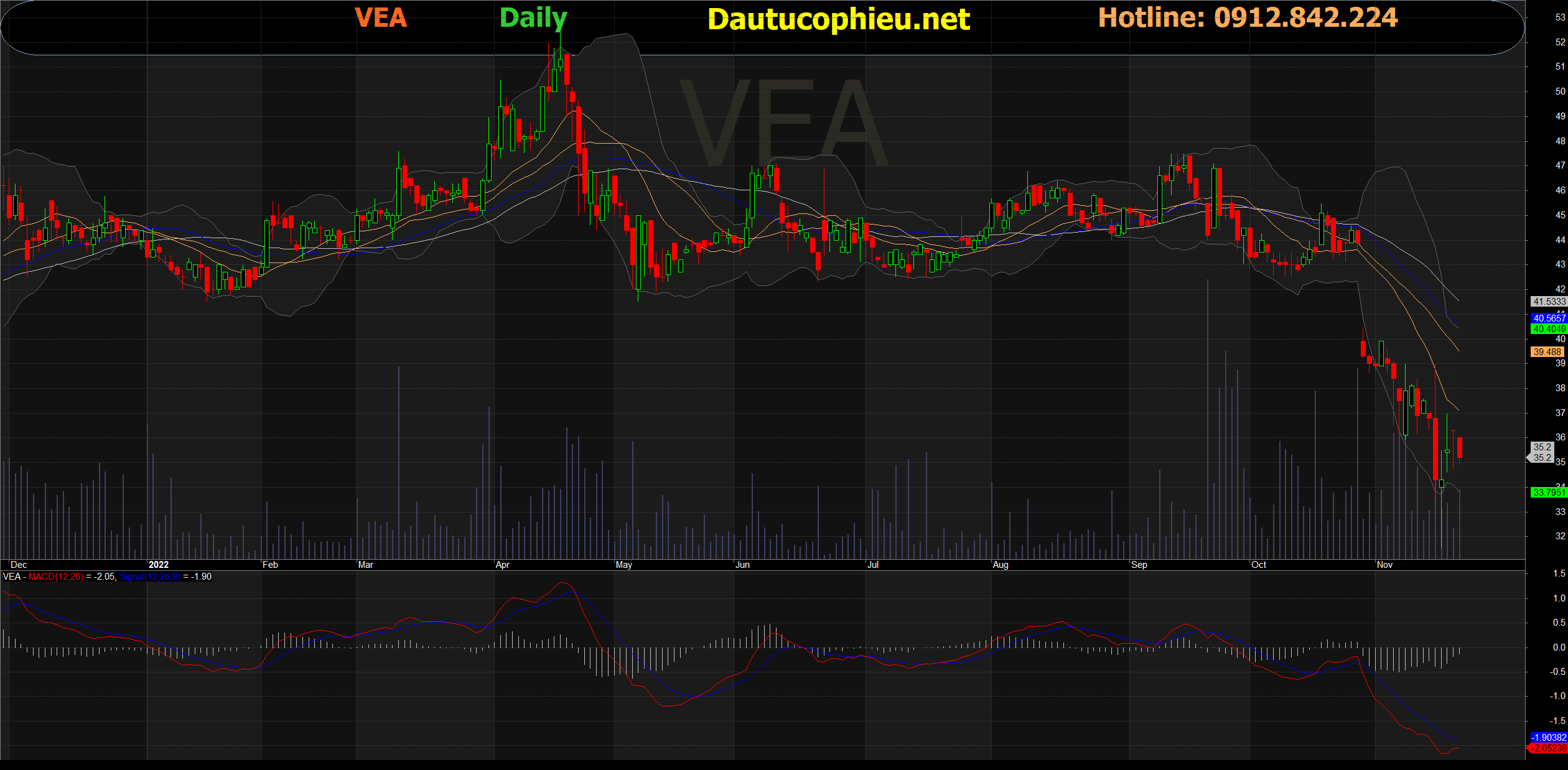 Đồ thị cổ phiếu VEA phiên giao dịch ngày 21/11/2022. Nguồn: AmiBroker