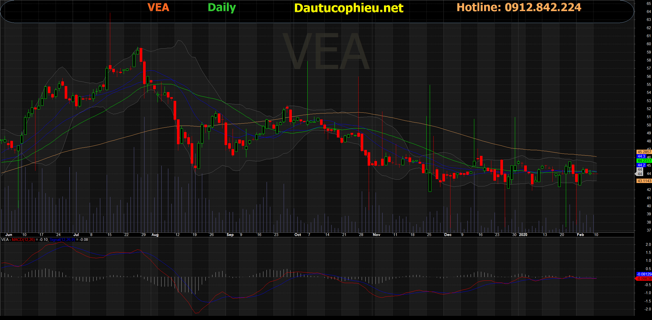 Đồ thị cổ phiếu VEA phiên giao dịch ngày 11/02/2020. Nguồn: Amibroker.