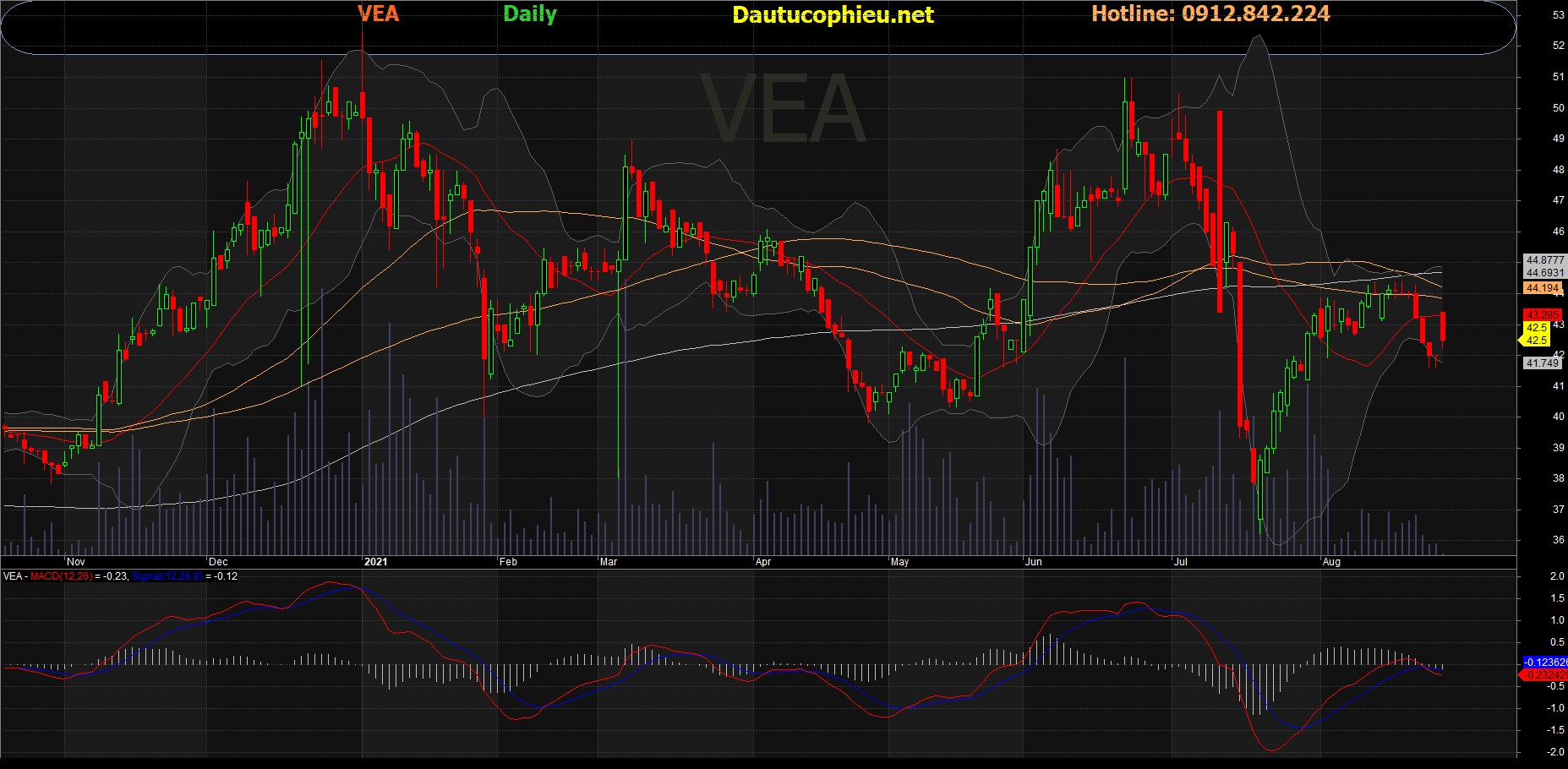 Đồ thị cổ phiếu VEA phiên giao dịch ngày 26/08/2021. Nguồn: AmiBroker